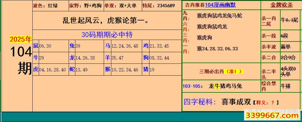 | 主题 :104期:小鱼儿30码期期中+幽默猜测 |