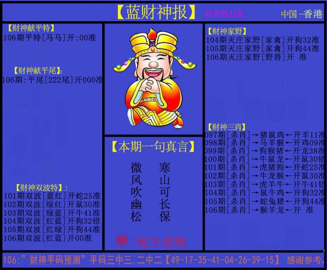 | 主题 :106期:蓝财神 |