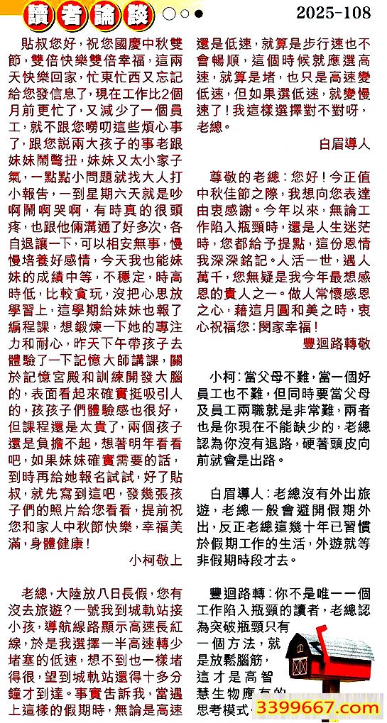 主题 :108期:彩民推荐〖貼信讀者論壇〗