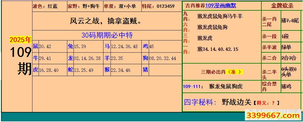 主题 :109期:小鱼儿30码期期中+幽默猜测