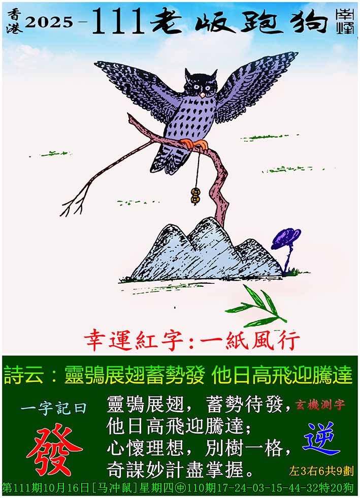 111期老版跑狗一字記之曰:【發】 玄機測字:《逆》