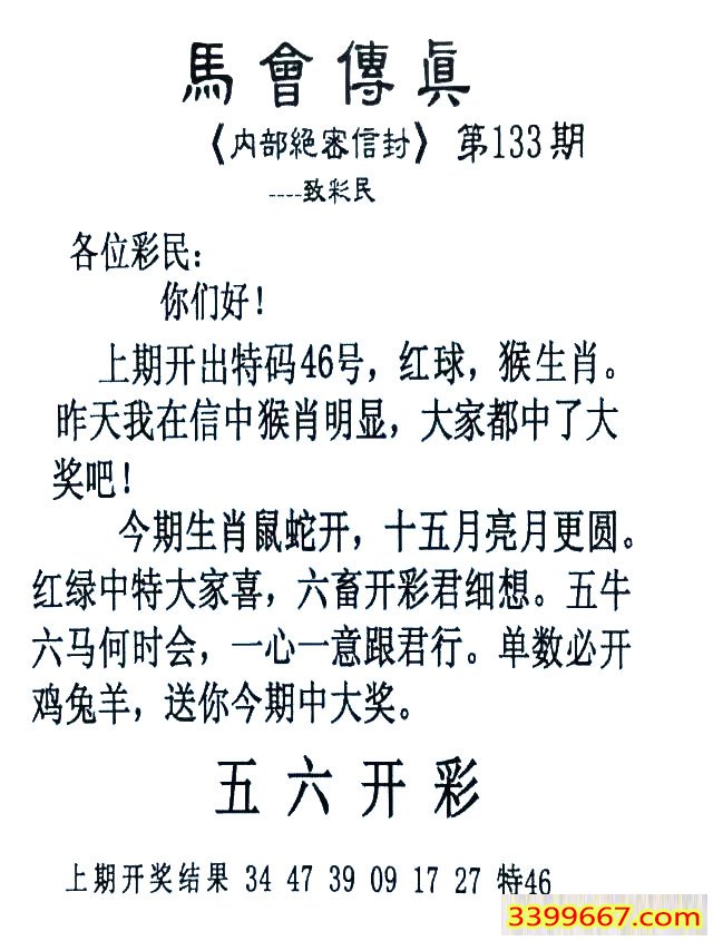 | 主题 :133期:首发推荐:≮馬會傳眞≯→(香港正版) |