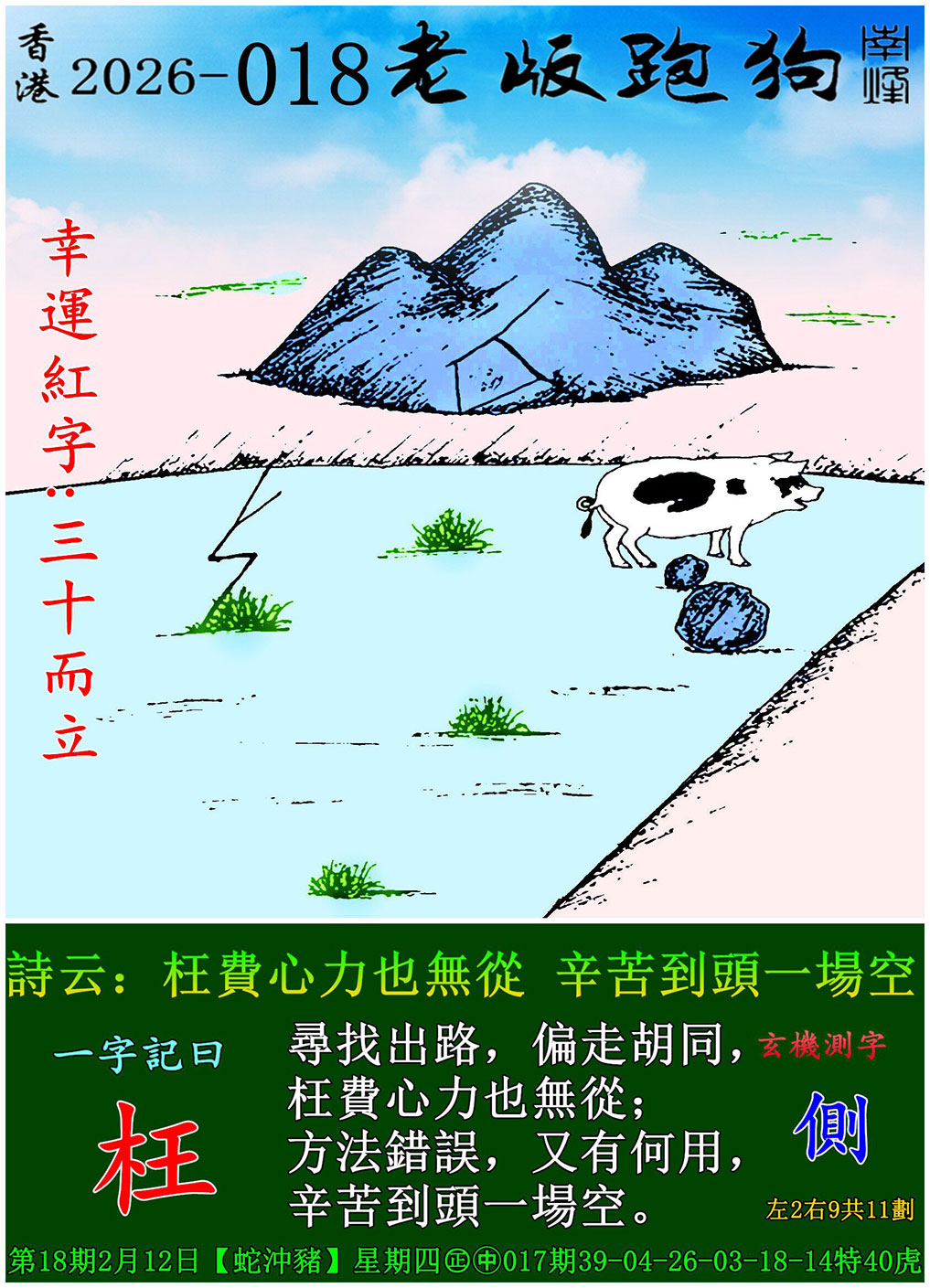 主题 : 018期老版跑狗一字記之曰:【枉】 玄機測字:《側》