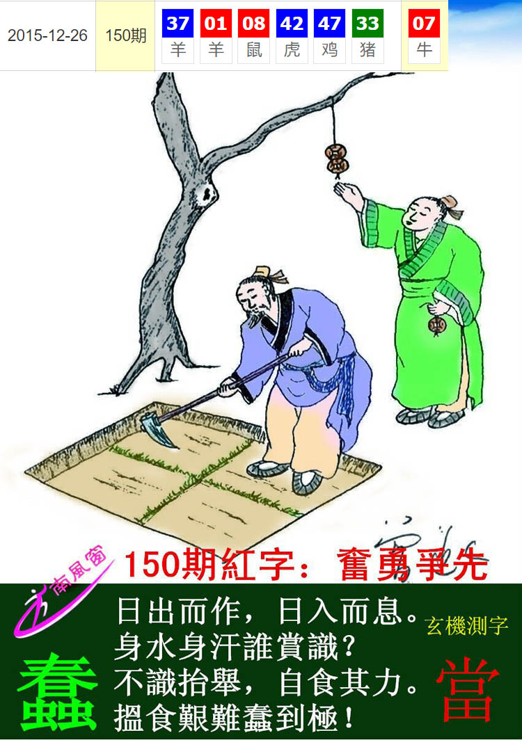 主题 : 037期:新版跑狗一字記之曰【鋤】 玄機測字:【期】